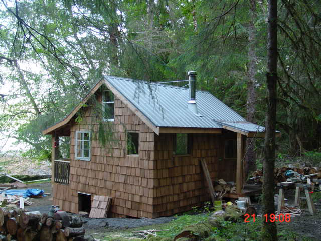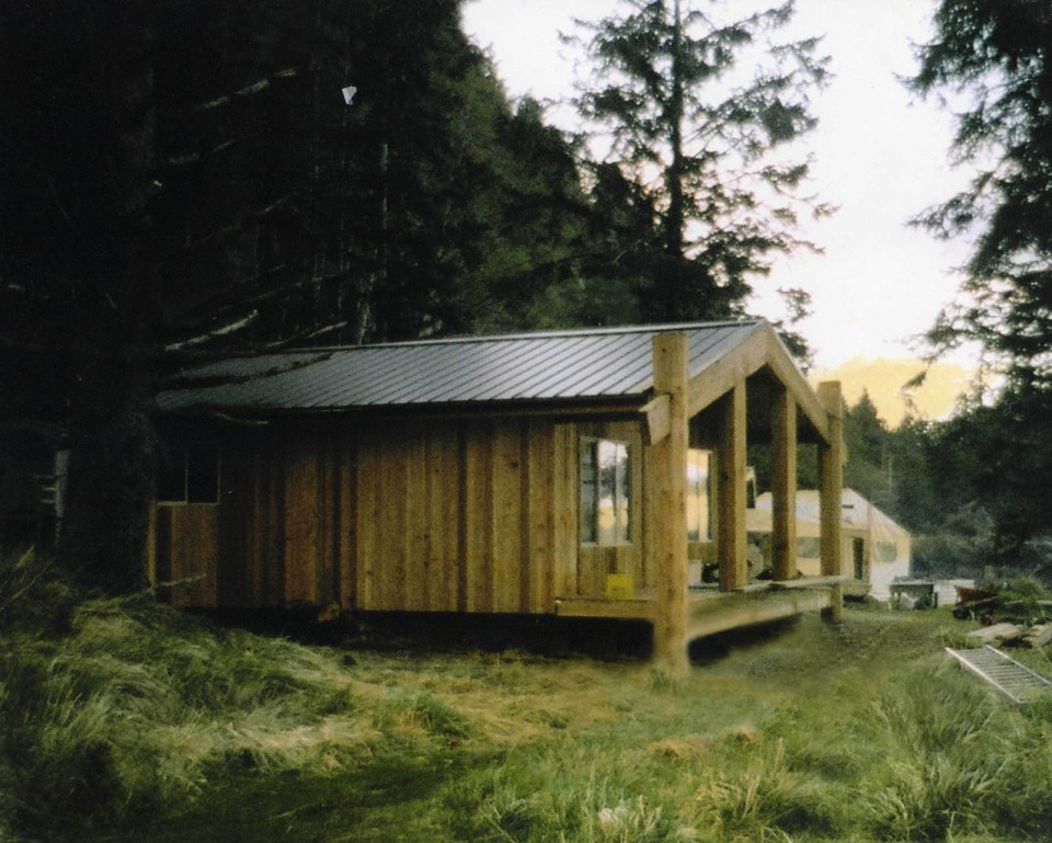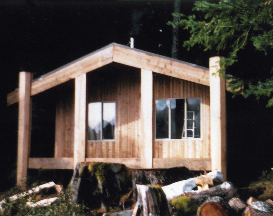 Shell of a 2 beam Parks Canada Watchmen cabin, under contraction located at Hotsprings Island in Haida Gwaii