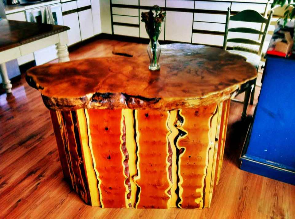 Burl top island with yew wood sides