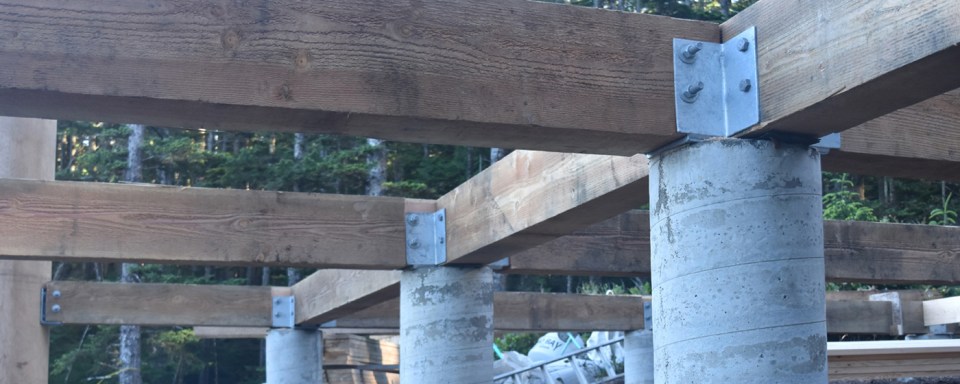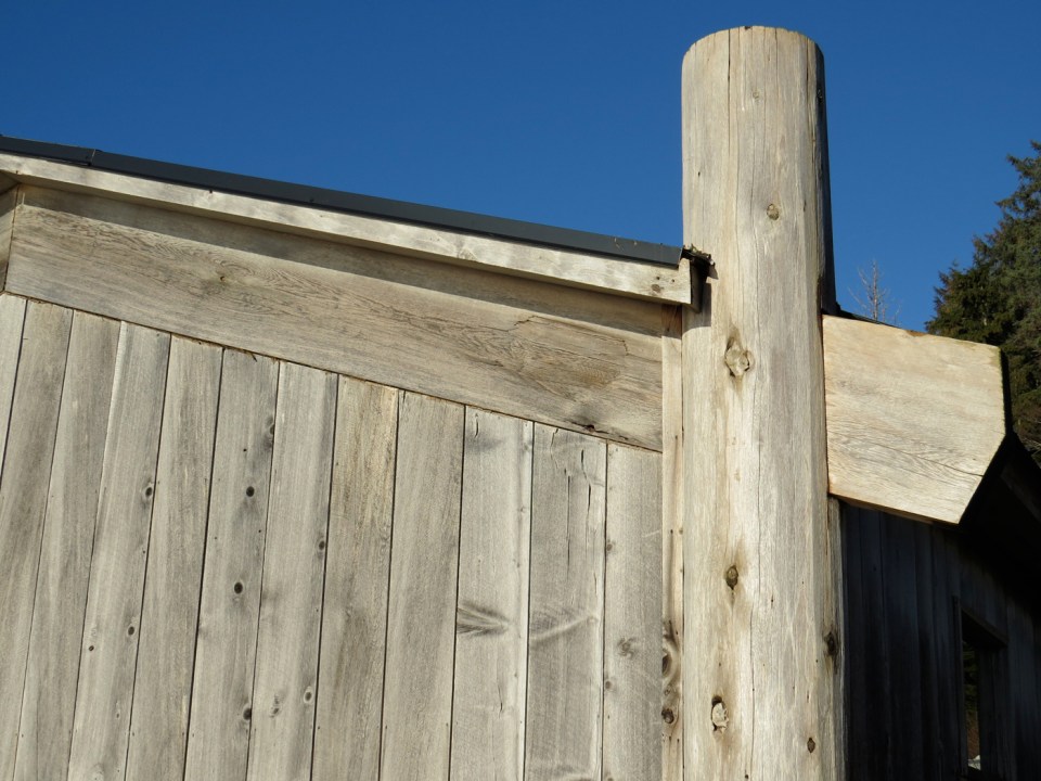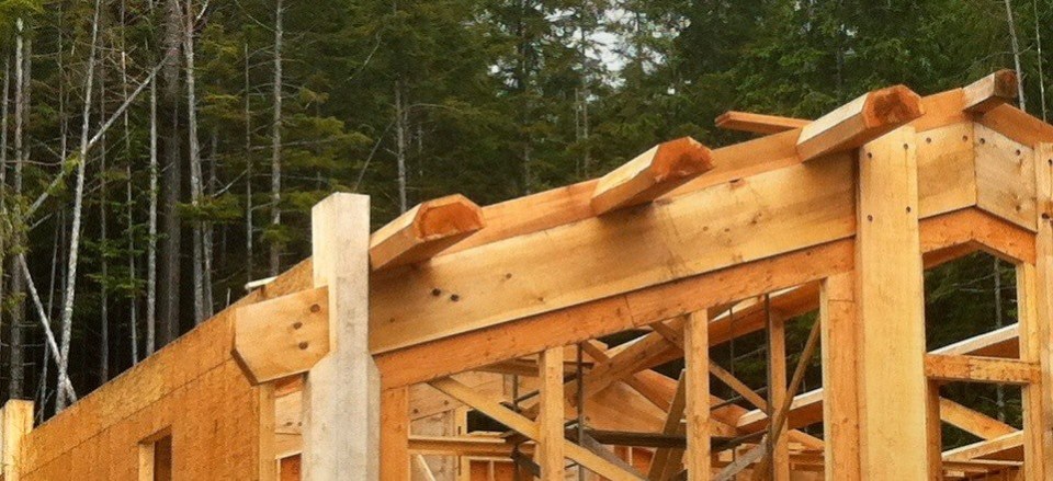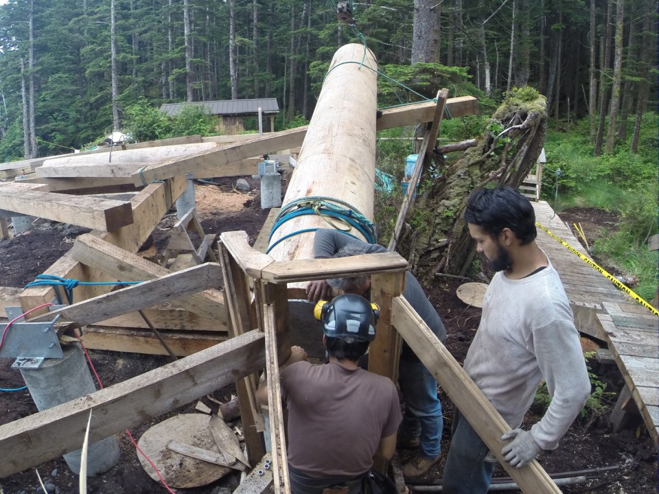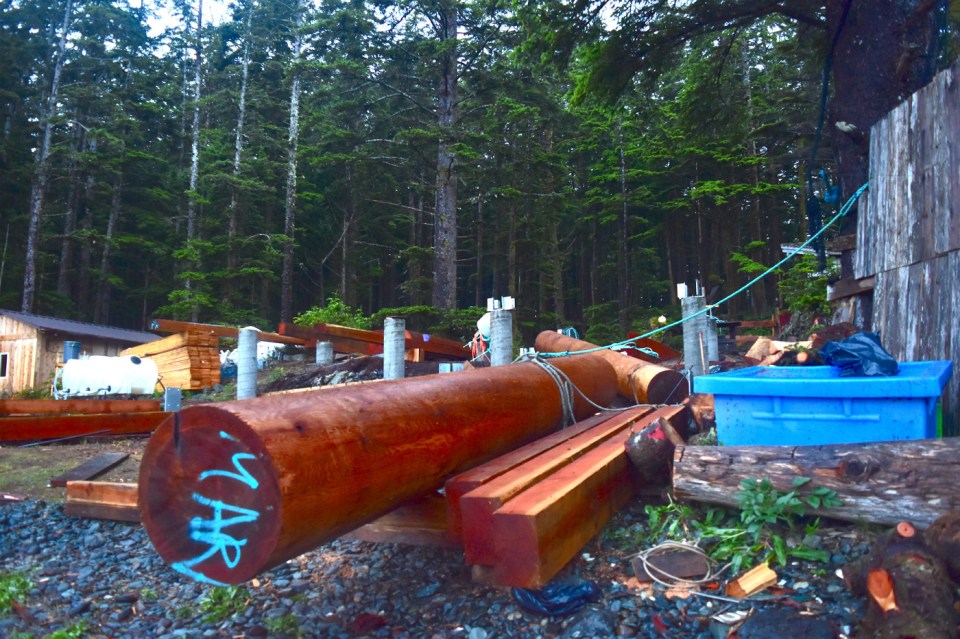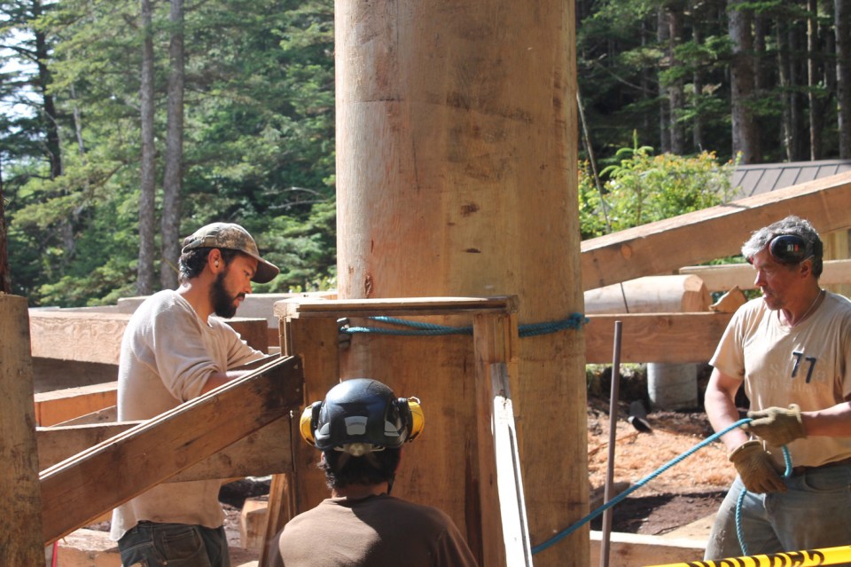 Watchmen cabin construction at SGang Gwaay, in Gwaii Haanas Park