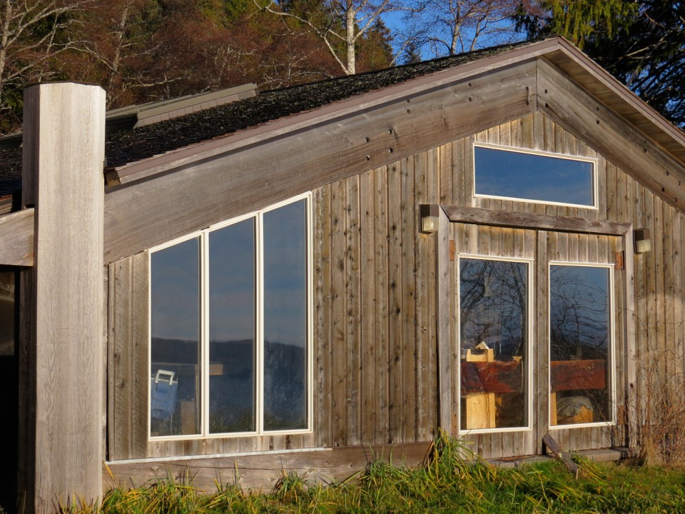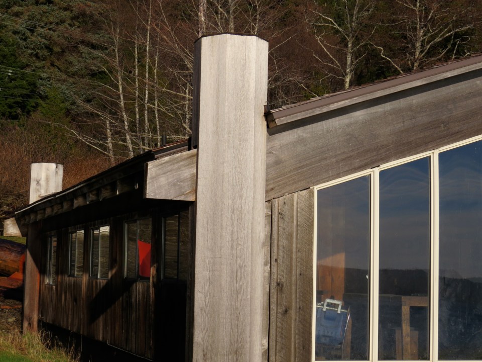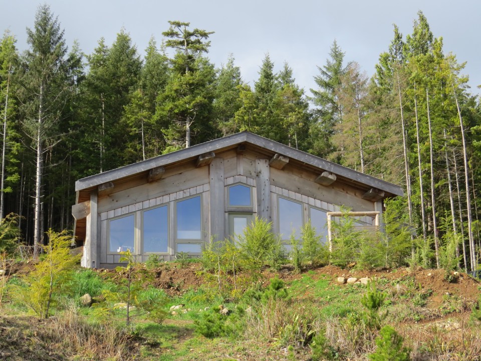 This image shows the back entrance of the cabin. Large overhangs will provide cover from the rain. This cabin replaced an older cabin that had been in the area for years, and needed updating.