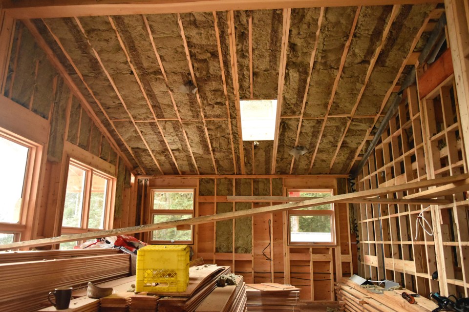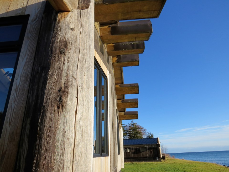 These two images show the new longhouse cabin under construction. The cabin will accommodate Haida Gwaii Watchmen for approximately a six month time period. In this beautiful setting with ocean views, you can imagine this is a most desired place to work. The Watchmen will be comfortable in their own rooms, with modern amenities as much as possible in this remote location.